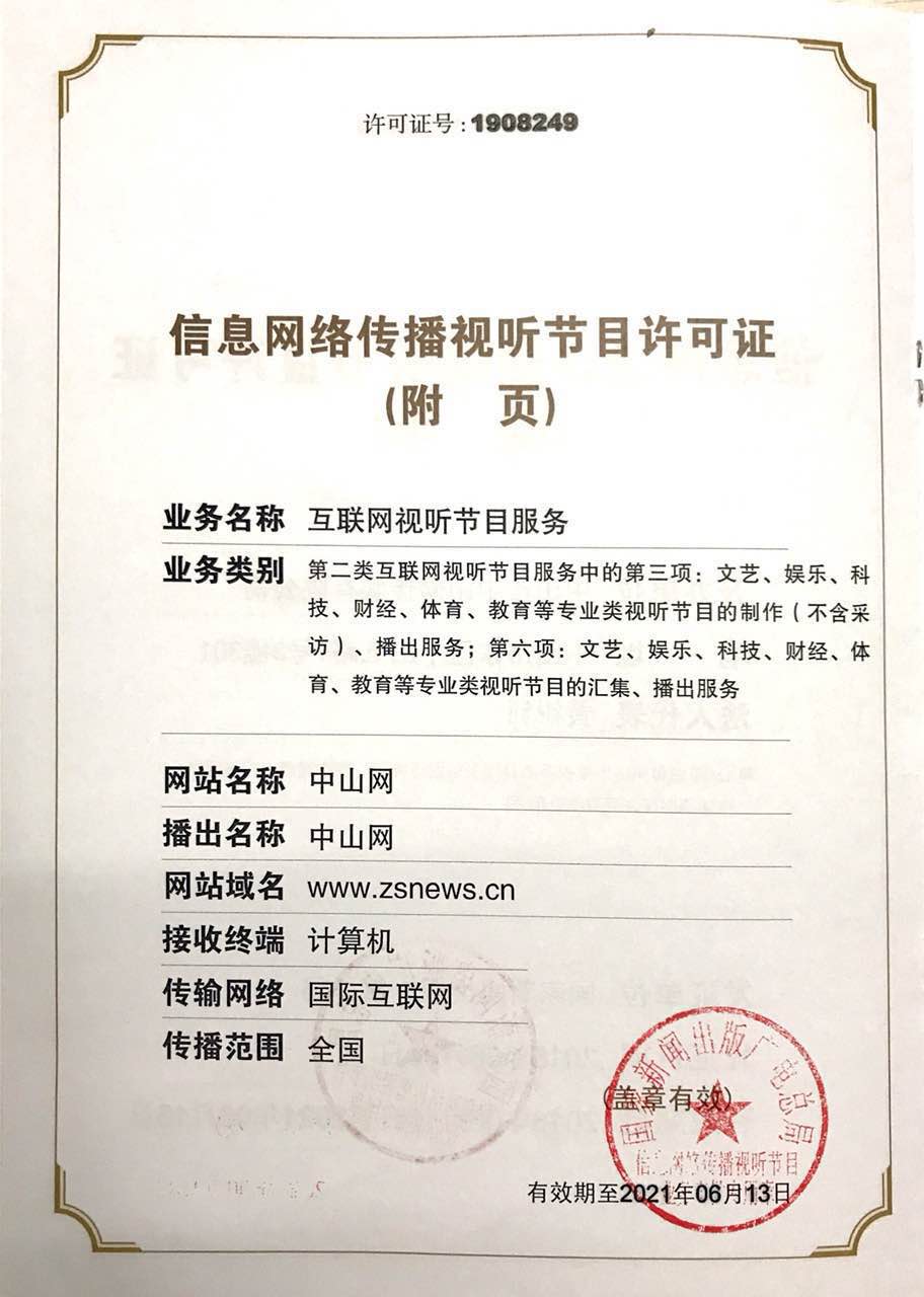 信息網(wǎng)絡傳播視聽節(jié)目許可證號1908249
