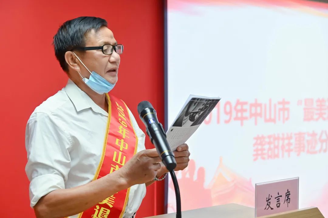 隨后,戰(zhàn)時二等功臣蔣添祥、2019年中山市“最美退役軍人”龔甜祥分別進行先進事跡分享。