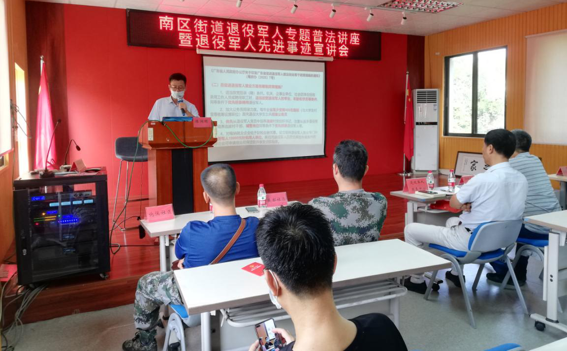活動(dòng)邀請(qǐng)南區(qū)街道駐點(diǎn)律師陳潤(rùn)明現(xiàn)場(chǎng)授課,講解《退役軍人保障法》《民法典》《退役士兵安置條例》等法律法規(guī),對(duì)其中涉及的退役安置、就業(yè)創(chuàng)業(yè)、撫恤優(yōu)待、服務(wù)管理和法律責(zé)任等內(nèi)容進(jìn)行了深入講解,切實(shí)展現(xiàn)尊法、學(xué)法、知法、用法的良好氛圍。