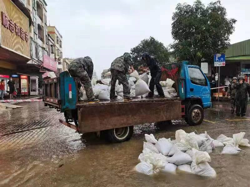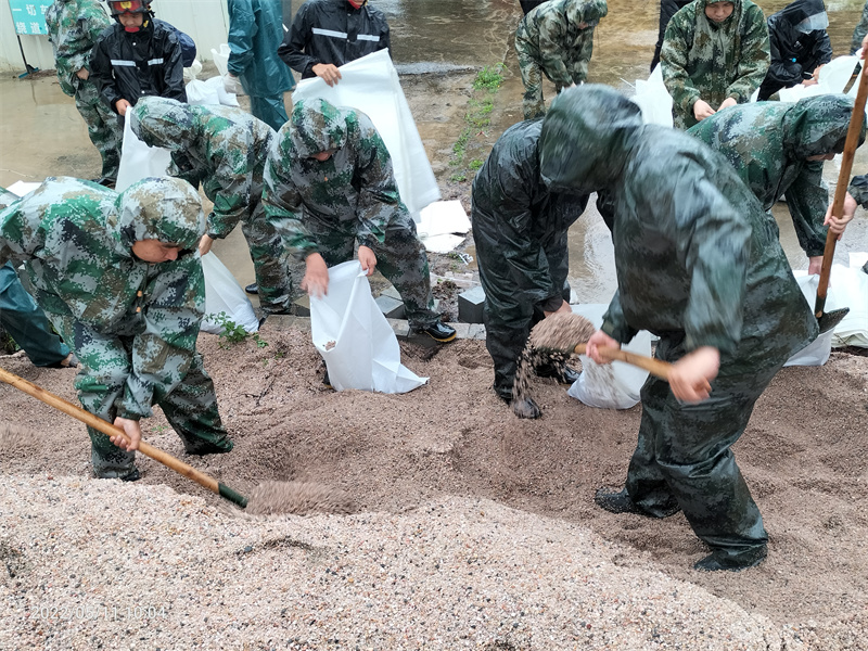 “我們已做好充分準(zhǔn)備,手電筒、救生衣、雨衣、膠鞋等防汛物資已準(zhǔn)備就緒,24小時(shí)防汛值班,隨時(shí)待命,確保防汛工作有序進(jìn)行。”五桂山武裝部相關(guān)工作人員呂兆彬介紹,上午9時(shí)許,南橋新村出現(xiàn)內(nèi)澇情況,村里所屬民兵已就近動(dòng)員,前往現(xiàn)場參與處置。 同時(shí),中山軍分區(qū)要求各鎮(zhèn)街民兵應(yīng)急分隊(duì)迅速收攏人員,積極參與本鎮(zhèn)街、村防汛救災(zāi)工作,在防汛搶險(xiǎn)一線打響“保衛(wèi)戰(zhàn)”,全力以赴保障人民群眾生命財(cái)產(chǎn)安全。中山軍分區(qū)相關(guān)負(fù)責(zé)人介紹:“前幾天,我們都已經(jīng)指導(dǎo)各鎮(zhèn)街武裝部對防汛裝備器材進(jìn)行了檢修,并結(jié)合民兵應(yīng)急分隊(duì)集中輪訓(xùn)開展了防汛應(yīng)急演練?!?/p>  ▲圖為神灣鎮(zhèn)民兵在裝沙袋,準(zhǔn)備堵住內(nèi)澇道路。(通訊員 吳容照 攝)