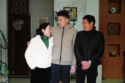 南朗“準新兵”程俊楠(中)和父母的合照。本報記者 易承樂 攝