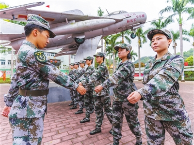“向右看齊!向前看!現(xiàn)在教你們軍人隊列動作中的脫帽戴帽要領(lǐng)……”3月21日下午,在中山市國防教育基地訓(xùn)練場上,一支七人訓(xùn)練小隊顯得格外特別,她們是今年上半年應(yīng)征入伍的中山女兵:梁晶、馮妙瑩、藍宇瑩、陳琬琪、溫黎嘉茵、劉燕彤、蘇汶詩。 她們都是00后女大學(xué)生,身著迷彩服,精神抖擻地在教官羅偉進的帶領(lǐng)下有序而緊張地開展隊列訓(xùn)練?!捌叨浣鸹ā鼻酀赡鄣哪樕蠈憹M了對軍旅生活的向往和期待。她們將通過幾天的役前教育訓(xùn)練,邁出軍旅生活第一步。 ■五次報名應(yīng)征終圓夢 七朵金花中,沙溪鎮(zhèn)占據(jù)兩席名額,她們分別是藍宇瑩和劉燕彤。沙溪鎮(zhèn)武裝部工作人員劉偉立說:“從歷年來看,這次是我們鎮(zhèn)出女兵人數(shù)最多的一次。其中,龍聚環(huán)村民小組更是出兵大戶,幾乎每年都有男女兵從這里出。” 身高1.7米的劉燕彤就來自沙溪鎮(zhèn)樂群村(龍聚環(huán)村民小組),就讀于廣東海洋大學(xué),是一名大二學(xué)生?!拔矣洃浿忻看未謇镉腥水敱胛椋紩e行隆重的送兵儀式,整個村子鑼鼓喧天鞭炮齊鳴,還有舞獅表演助陣,好熱鬧。很小的時候我就覺得當兵很威風(fēng)很光榮,在我心里也就埋下了要當兵的種子?!眲⒀嗤f:“我對部隊生活充滿了期待,進入部隊后我希望自己能考上軍校留在部隊長期發(fā)展。” 藍宇瑩來自沙溪鎮(zhèn)匯源社區(qū),就讀于廣東技術(shù)師范大學(xué),是一名大三學(xué)生。她曾在網(wǎng)上報名應(yīng)征了5次,可見其參軍入伍決心之大?!拔覐男【秃艹绨蒈娙?,從小學(xué)一直到大學(xué)都是學(xué)校國旗護衛(wèi)隊的隊員。”藍宇瑩表示,幸運的是今年3月份,自己終于圓夢軍營即將前往某戰(zhàn)區(qū)海軍服役。 藍宇瑩的母親錢梅香表示:“我非常支持女兒的決定,感覺入伍對女生來說是一種很好的鍛煉。如果有機會,我還想讓小兒子上大學(xué)后也進入部隊參軍報國,向姐姐學(xué)習(xí)?!?/p> ■對軍營生活充滿期待 七朵金花中,來自南朗街道下沙村的馮妙瑩就讀于廣東醫(yī)科大學(xué),今年6月份大學(xué)畢業(yè)?!拔覀冏黾议L的就是希望她入伍后好好干,加油努力?!瘪T妙瑩的父親不善言辭,非常支持女兒的從軍決定,“我年輕時也想當兵,但身體條件不合格,錯失了機會。” “我大一就加入了學(xué)校國旗護衛(wèi)隊,通過日復(fù)一日的隊列訓(xùn)練,開始向往激情如火的軍營生活?!瘪T妙瑩告訴記者,“對即將到來的部隊生活,既期待又有點擔(dān)心。擔(dān)心去到一個陌生的環(huán)境會不適應(yīng),但既然選擇了這條路,我一定會克服困難,堅持下去,爭取留在部隊發(fā)展,早日成為一名優(yōu)秀軍人?!?/p> 來自民眾街道的梁晶就讀于南華大學(xué),今年6月即將大學(xué)畢業(yè)。她剛進入大一就提交了入黨申請書,2022年正式成為一名共產(chǎn)黨員。梁晶說:“2021年河南特大暴雨期間,通過新聞媒體看到中國軍人逆流而上,連夜出征轉(zhuǎn)移群眾的場景讓我深受感動。那時起,我就萌生了參軍的想法?!毙疫\的是,她今年終于圓夢軍營,她表示:“面對未知的軍營生活,我已經(jīng)作好了心理準備。進入部隊后,我一定會好好適應(yīng),有信心能在部隊干好?!?/p> 臨近傍晚,一天的訓(xùn)練就要結(jié)束了,中山市國防教育基地門口上方一條寫著“保家衛(wèi)國終不悔,綠色軍營獻青春”的紅色橫幅迎風(fēng)招展,不遠處的軍營生活正等著中山這“七朵金花”的到來,她們也在憧憬著…… 記者 張倩 ◆編輯:龍慧◆二審:鄭沛鋒◆三審:周亞平 |