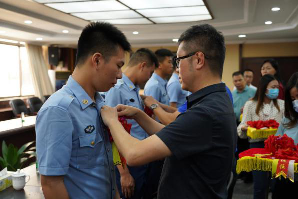退伍士兵譚俊豪 、譚銳鴻、劉金權、陳晉民在部隊獲優(yōu)秀士兵榮譽。