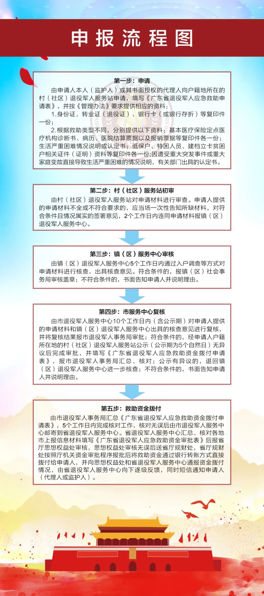 廣東省退役軍人應急救助資金自2019年7月設立以來,為我市退役軍人及其他優(yōu)撫對象提供了有力的幫扶援助。 其救助類型主要分為四類:申請人因患重大疾病、發(fā)生重大突發(fā)事件、發(fā)生重大家庭變故或其他特殊情況導致基本生活嚴重困難的。符合條件的申請人可向戶籍地所在的村(社區(qū))退役軍人服務站進行申請。 |