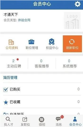 ▲發(fā)布職位流程 3、管理招聘 關(guān)注公眾號【國際人才網(wǎng)企業(yè)版】,在【招聘管理】菜單欄找到【簡歷管理】,即可查看主動應(yīng)聘的求職者,并可發(fā)起溝通或邀約面試。