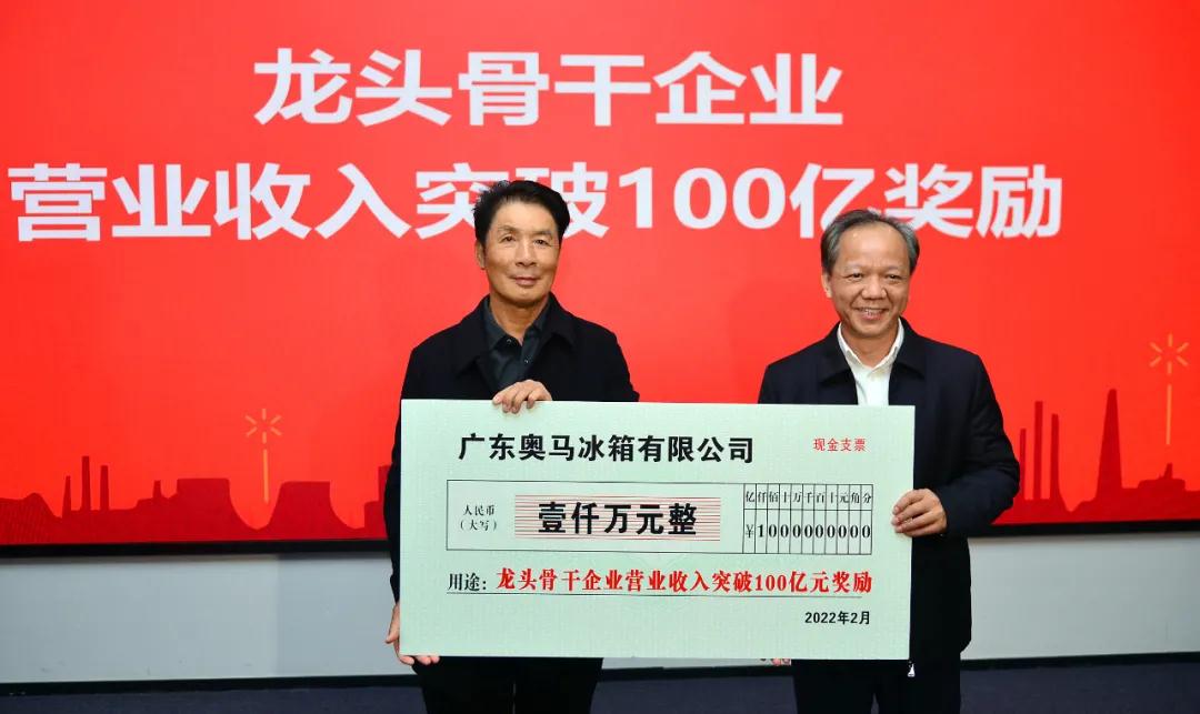 廣東奧馬冰箱有限公司是全球最大的冰箱ODM生產(chǎn)企業(yè),連續(xù)13年成為中國冰箱出口冠軍。去年底的一次調(diào)研,郭文海勉勵奧馬加快打造百億級企業(yè),并承諾目標(biāo)實現(xiàn)時前來為企業(yè)慶賀。2021年,奧馬不負眾望,營業(yè)收入超101億元,同比增長17%,首次突破百億大關(guān),繳納稅收5.5億元。