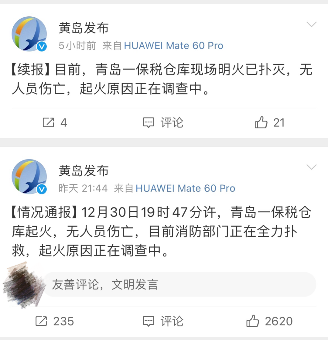 2023年12月30日19時47分許,青島一保稅倉庫起火,引發(fā)網(wǎng)友關(guān)注。