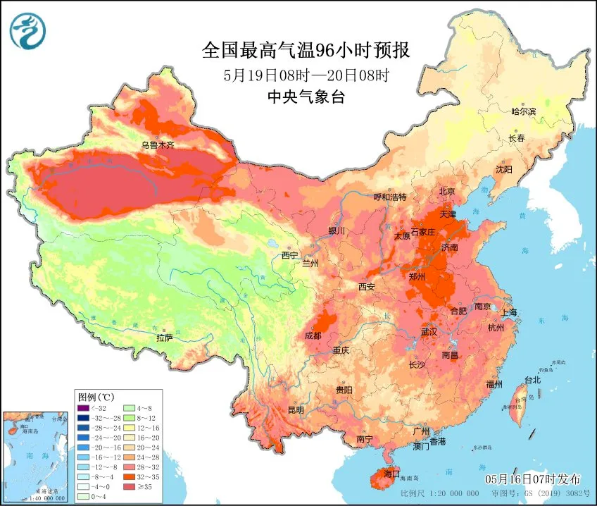 詳情:據(jù)中國天氣網(wǎng)消息,5月17日至19日,南疆盆地、華北平原、黃淮等地的部分地區(qū)將有35℃以上高溫,局地氣溫甚至可超37℃。省會級城市中,西安、鄭州、濟(jì)南都有望迎來今年首個高溫天氣,普遍早于常年,其中西安、鄭州將遭遇高溫“兩連擊”,公眾外出還需注意防暑降溫。而南方的暖熱程度遠(yuǎn)遠(yuǎn)不及北方,由于云量較多,多地還有雨水出沒,氣溫普遍會低于常年同期,江南大部最高氣溫普遍在30℃左右,南北氣溫倒掛。(來源:中央氣象臺、@中國天氣網(wǎng))