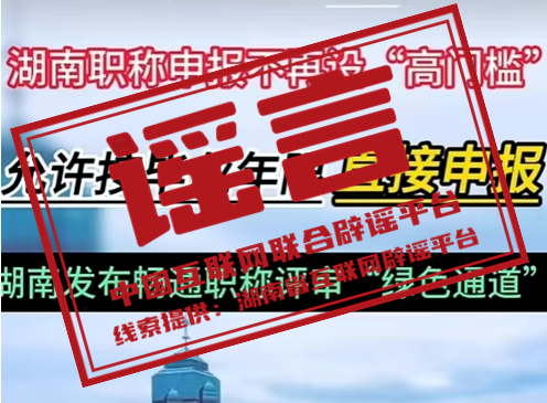 謠 言 湖南職稱申報(bào)取消“高門檻”,允許按畢業(yè)年限直接申報(bào)?