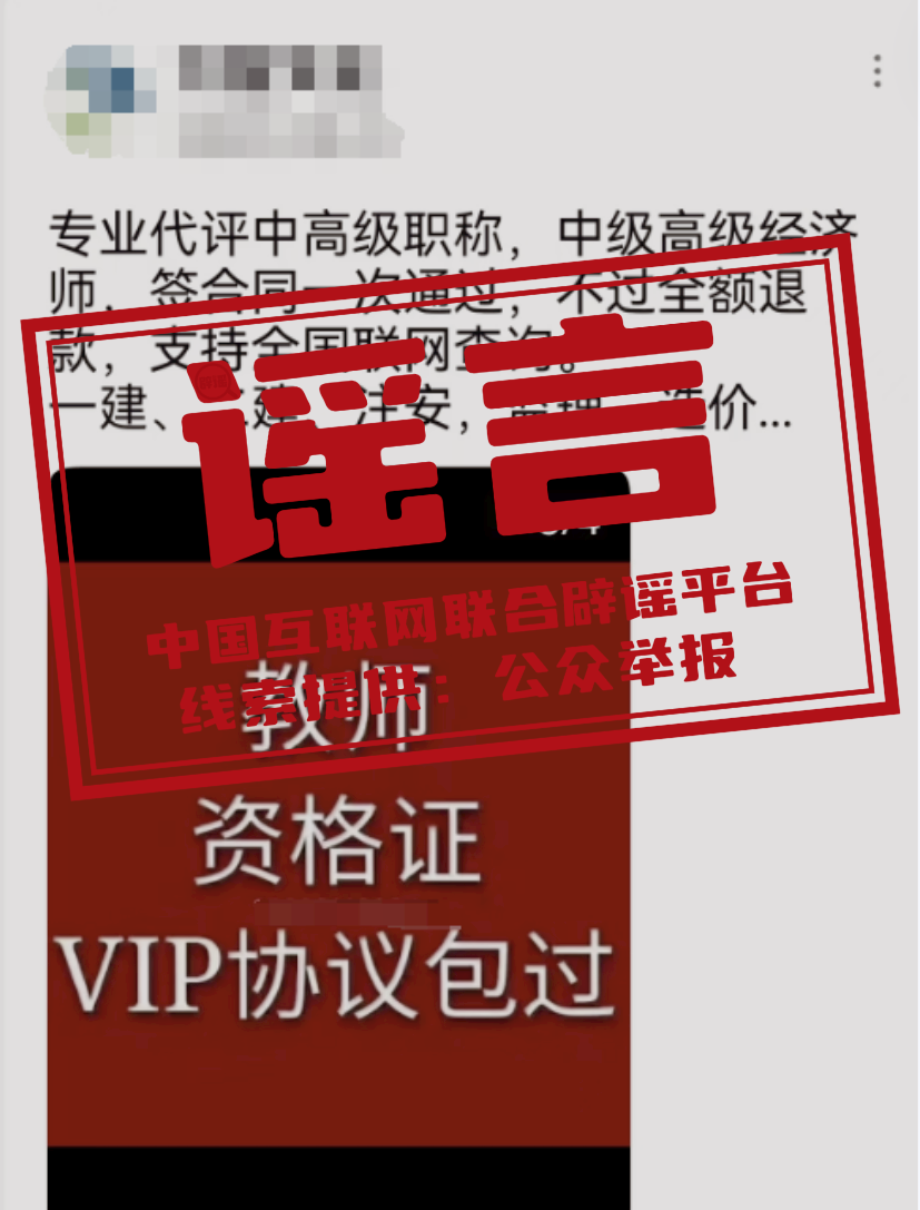 真相:近日,一些中介機構發(fā)布信息稱可以提供“一站式”“一對一”“8000元免試評定”“專屬通道,不過保退”等“職稱代評代辦服務”,引發(fā)社會關注。對此,人力資源和社會保障部表示:此類網傳內容均為詐騙信息。根據相關規(guī)定,申報人如果明知不符合職稱申報條件仍故意通過虛假承諾、偽造信息等手段進行申報,或者提供虛假材料、論文造假代寫、剽竊他人作品或者學術成果,業(yè)績成果不實或者造假,存在說情打招呼、暗箱操作等不正當行為,將被記入誠信檔案庫,記錄期限為3年;對申報材料真實性等承諾不實的,3年內不得申報評審職稱;違規(guī)取得的職稱,一經核實即由人力資源社會保障部門或者評審單位予以撤銷。情節(jié)嚴重涉嫌犯罪的,移送有關機關依法處理。(來源:“人力資源和社會保障部”微信公眾號)