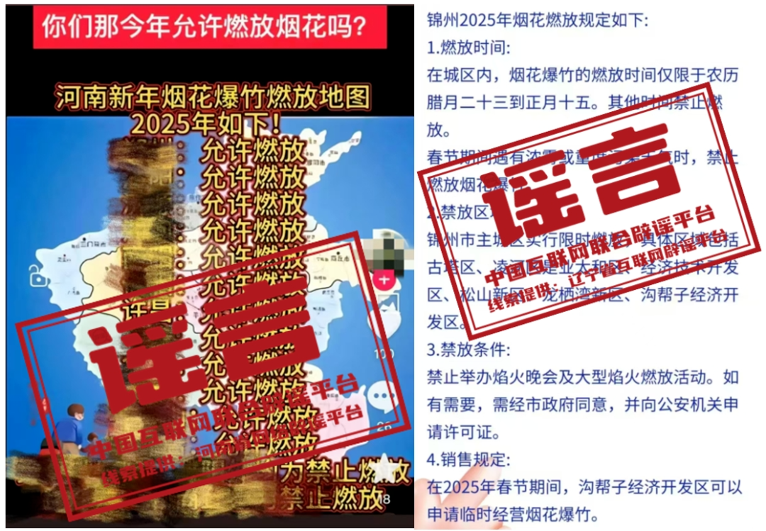 謠 言  2025年河南許昌、遼寧錦州允許燃放煙花爆竹?